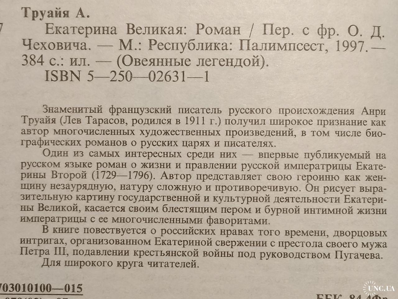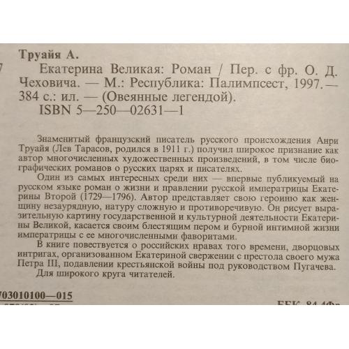 Труайя. Екатерина Великая. Серия Овеянные легендой. Издательство: Республика, Палимпсест. 1997 год. Очень хорошее состояние.