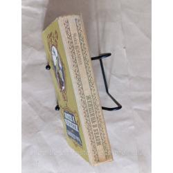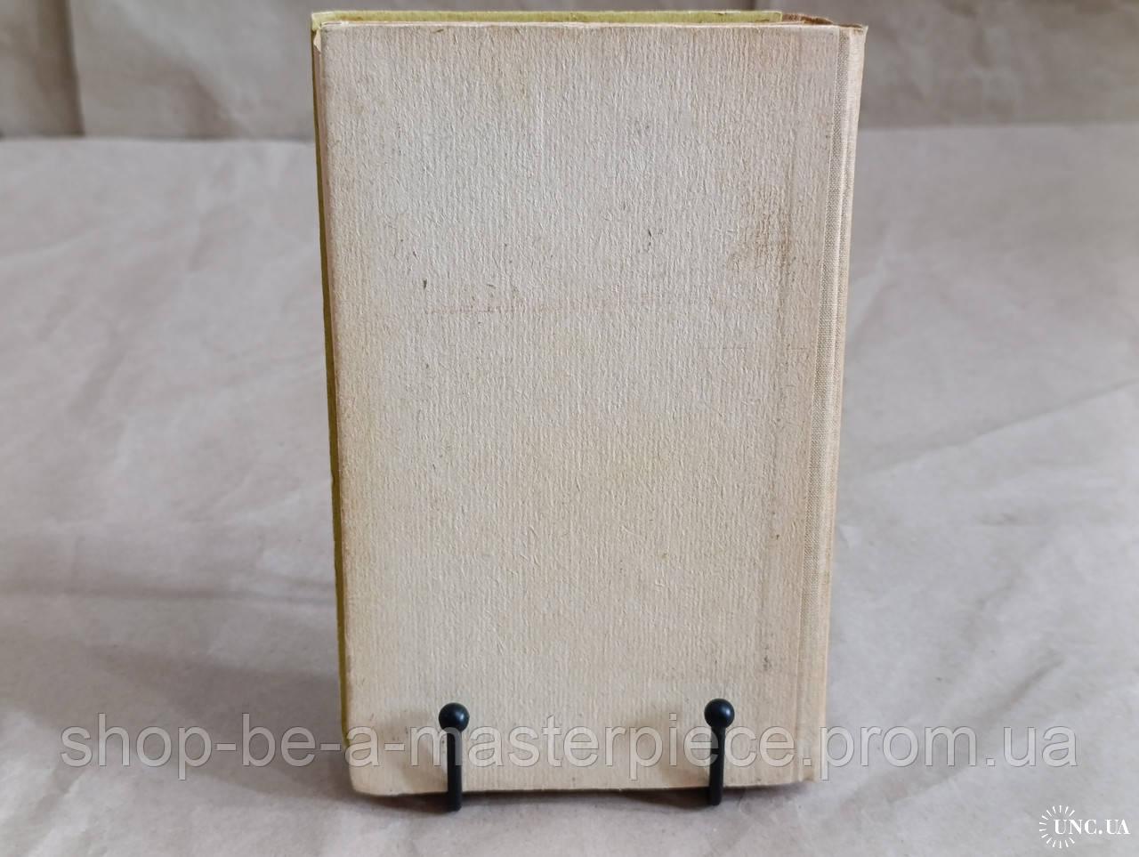 Твердый переплет. Боковая часть переплета тканевая, вымазалась за года. На первом развороте книга частично расклеилась