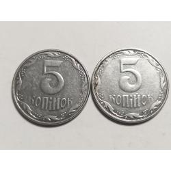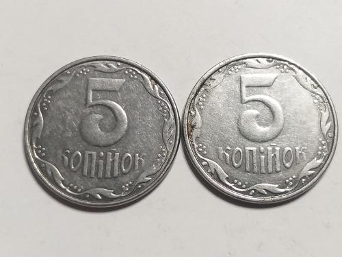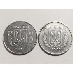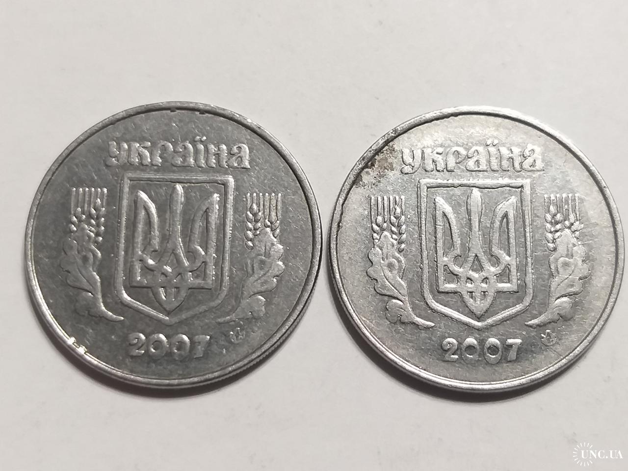 ОригиналУкраина 5 копеек 2007 год / Брак Крокодил / Мелкая насечка лот 2шт. (858)