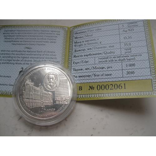 Присвячена одному з провідних центрів освіти і науки - Київському національному університету імені Тараса Шевченка. Заснований у 1834 році, цей заклад зробив неоціненний внесок у справу розвитку вищої школи, науки та культури, піднесення духовності українського народу.Стан по фото.Фото надані в капсулі та без.