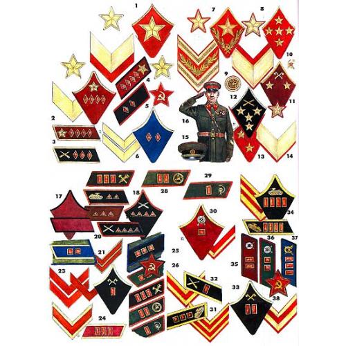 Система петличных знаков различия, учрежденных в июне 1924 года, не претерпела принципиальных изменений до введения погон. Варьировались лишь наименования должностей и званий, вид эмблем родов войск и служб, расцветка кантов и петлиц, число знаков в них и технология изготовления последних.