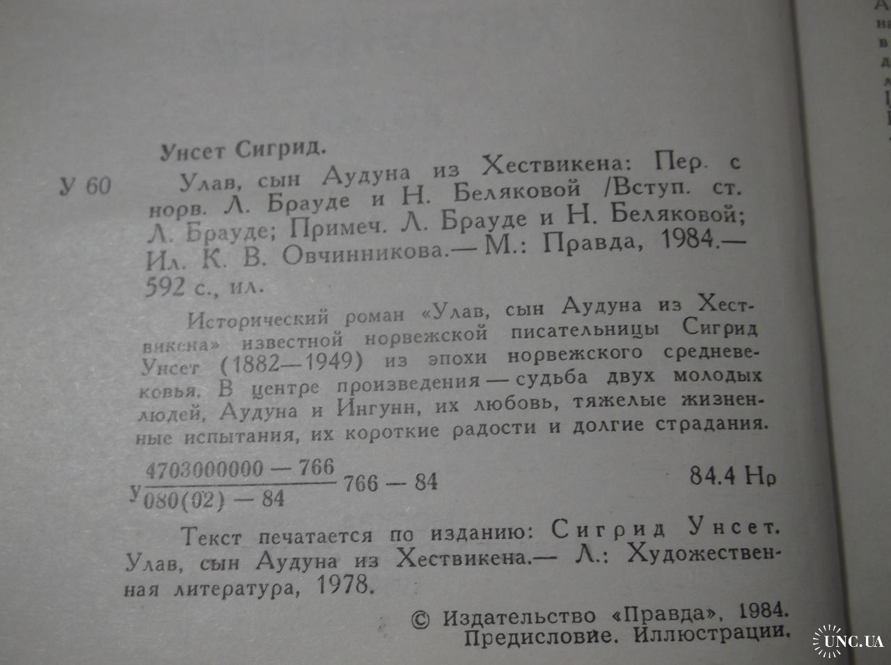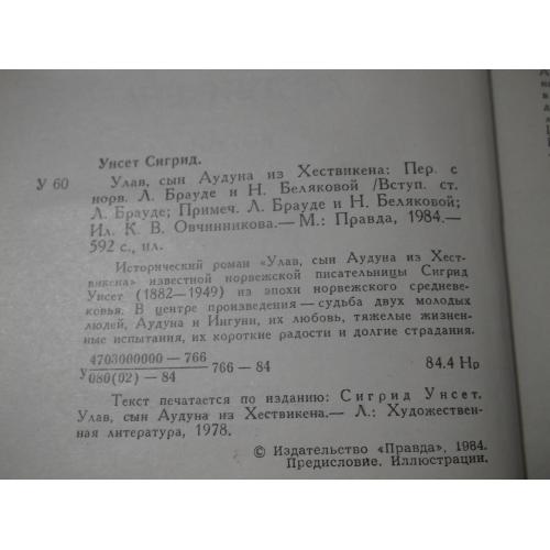 Унсет Сигрид. Улав, сын Аудуна из Хествикена. Издательство: Правда. 1984 год. Отличное состояние.