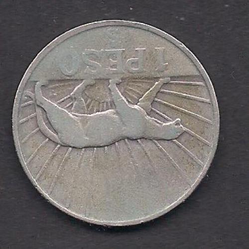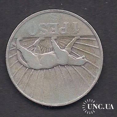 Оригиналмонета 1 песо, 1942 г., монета б/у не мытая, серебро, качество VF, стоимостью 110 грн., по каталогу Krause - 2,5 $.
