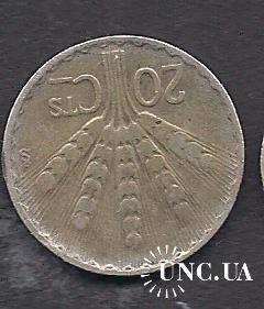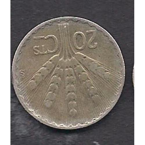 Оригиналмонета 20 цент, 1954 г., монета б/у не мытая, серебро, качество VF, стоимостью 40 грн., по каталогу Krause - 1,0 $.