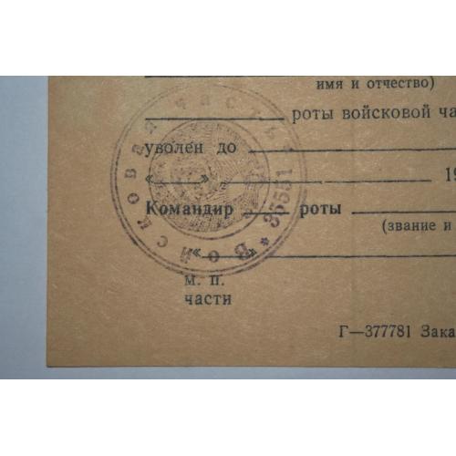 1961-1980Увольнительная записка. 1970-е годы.