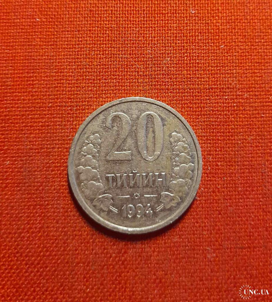ОригиналУзбекистан 20 тийин 1994г. Аверс: обод из точек вдоль канта.отличный сохран, Супер РЕДКИЕ