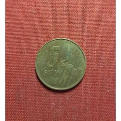ОригиналУзбекистан 5 сумов 2001г.Карта Узбекистана,нечастые
