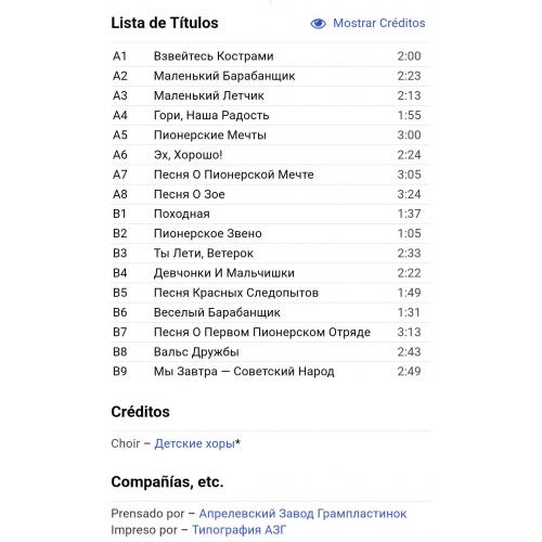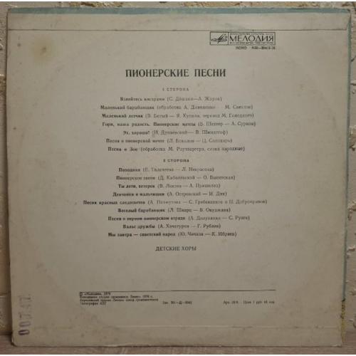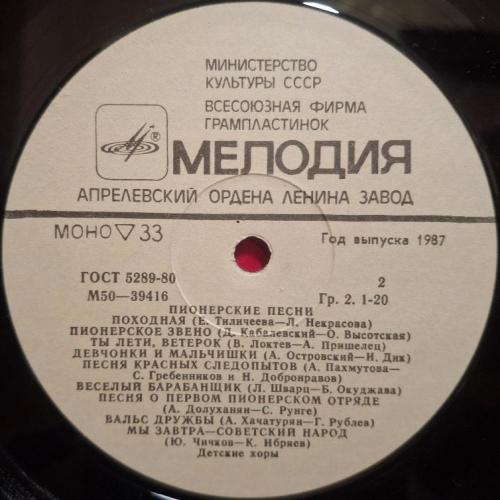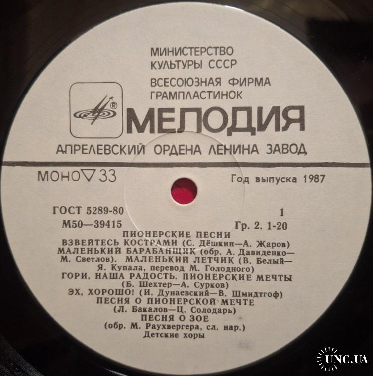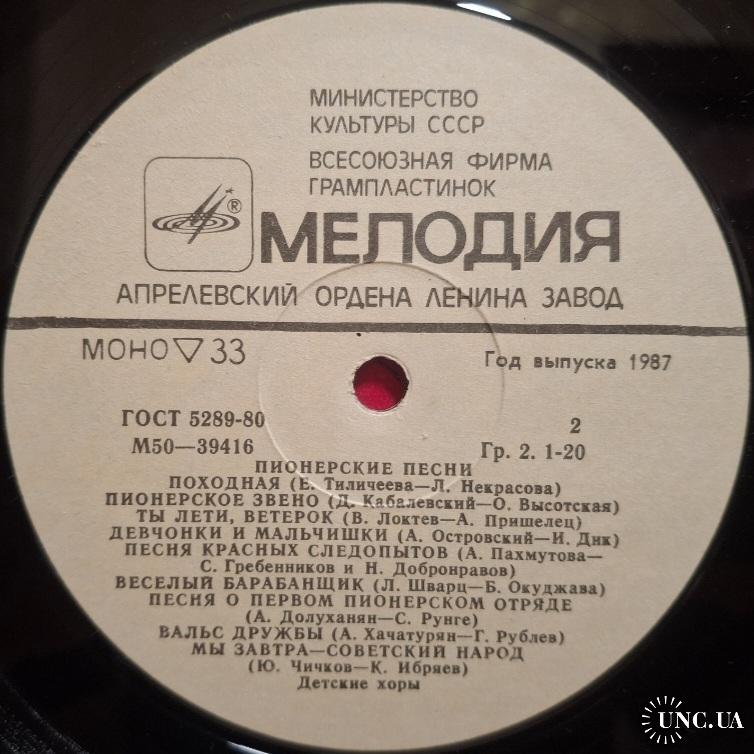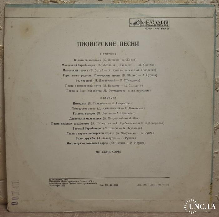 1961-1980Вінілова платівка. Збірка піонерських дитячих пісень у виконанні дитячих радянських хорів: Детские Хоры (Пионерские Песни)1976. Випуск фірми (Мелодія) СРСР, Апрелєвський завод грамплатівок, 1987-ий рік. Рідкісне видання (Rare). Лімітований тираж (Limited Edition). Стан платівки VG+. Стан конверту EX-. Відправка по Україні службами доставки: Нова Пошта, Укр Пошта, Делівері. Також відправляємо посилки за кордон по цілому світу.