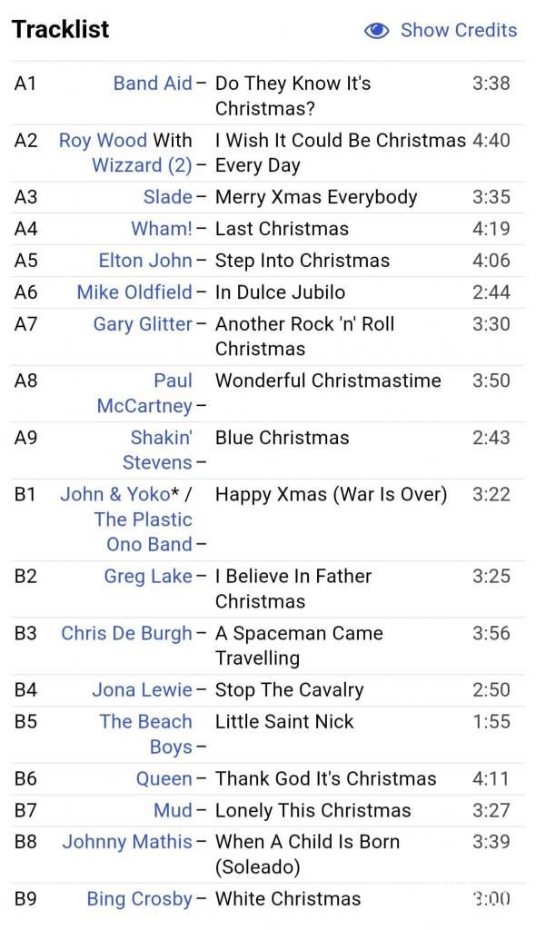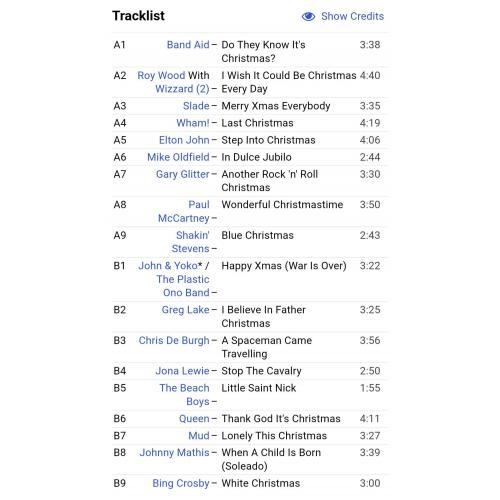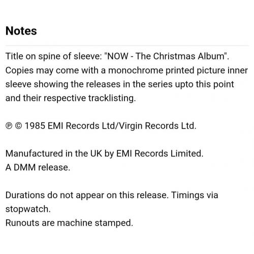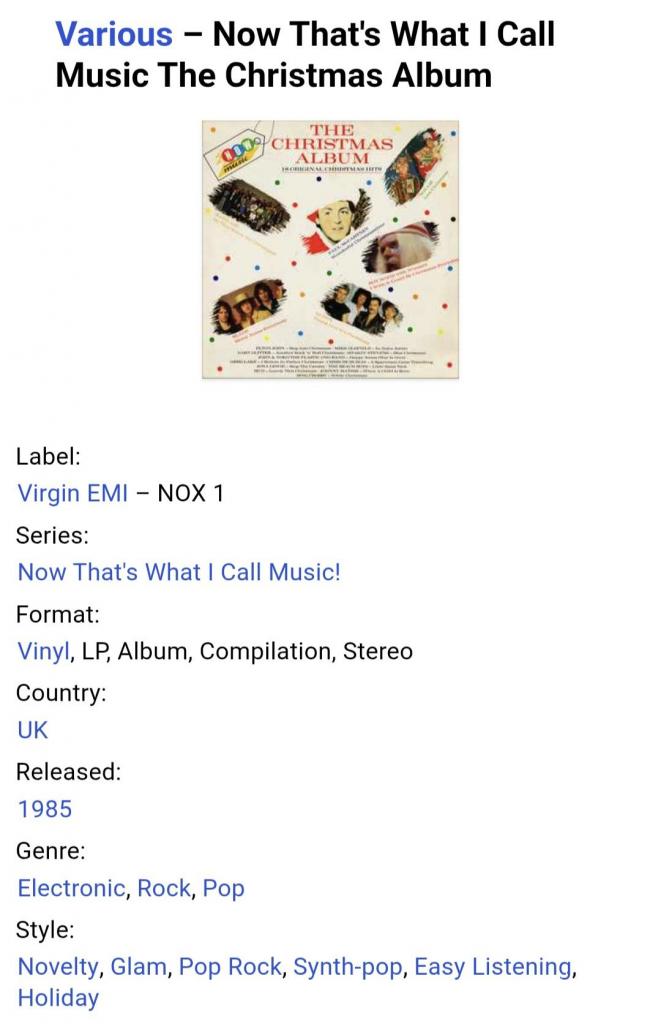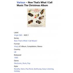 Вінілова платівка. Збірка Різдвяних хітів від світових мега зірок поп-рок музики таких як Джордж Майкл і група Вам, Джон Леннон і Йоко Оно, группа Куін, група Слейд, Пол Маккартні, група Мад, Гарі Гліттер, Кріс Де Бург, Род Вуд, група Біч Бойс та інші (The Christmas Album) 1985. Серія випуску Now That's What i Call Music The Christmas Album. Випуск фірми (Virgin EMI) UK, 1985-ий рік. Оригінальне, першопресове Британське видання. Стан платівки NM-/EX+. Конверт глянцевий. Стан конверту ЕХ+. Відправка по Україні службами доставки: Нова Пошта, Укр Пошта, Делівері. Також відправляємо посилки за кордон по цілому світу.