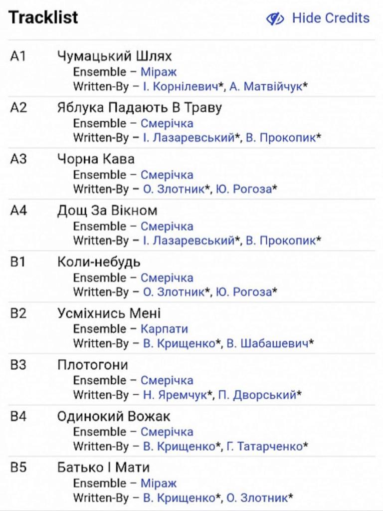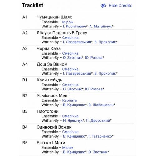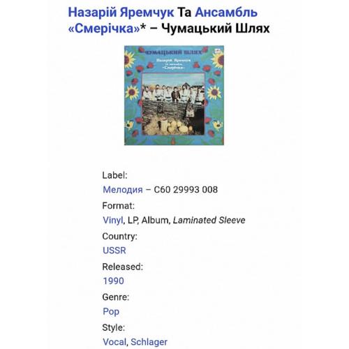 Вінілова платівка. Третій, в дискографії, студійний альбом Українського (радянського) вокально інструментального ансамблю з Чернівецької області, Смерічка (Чумацький Шлях) 1986-88. Випуск фірми (Мелодія) СРСР, Апрелєвський завод грамплатівок, 1990-ий рік. Оригінальне, першопресове видання. Стан платівки: на вигляд VG+ (поверхневі не значні потертості), по звуку все добре, ЕХ+. Конверт ламінований. Стан конверту ЕХ+. Відправка по Україні службами доставки: Нова Пошта, Укр Пошта, Делівері. Також відправляємо посилки за кордон по цілому світу.
