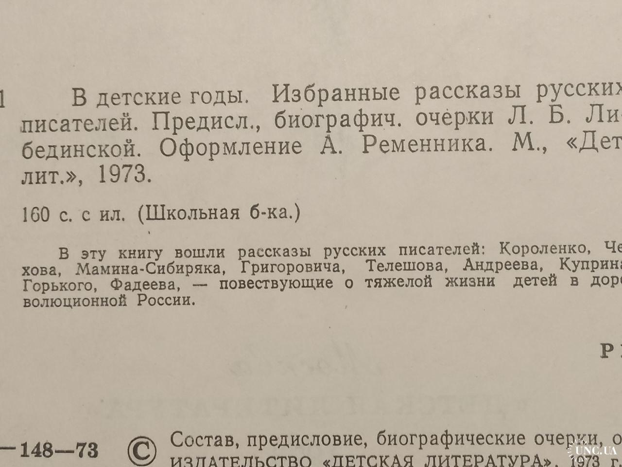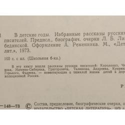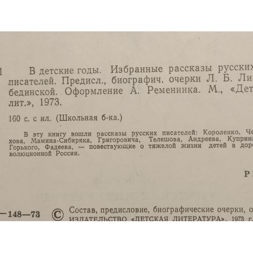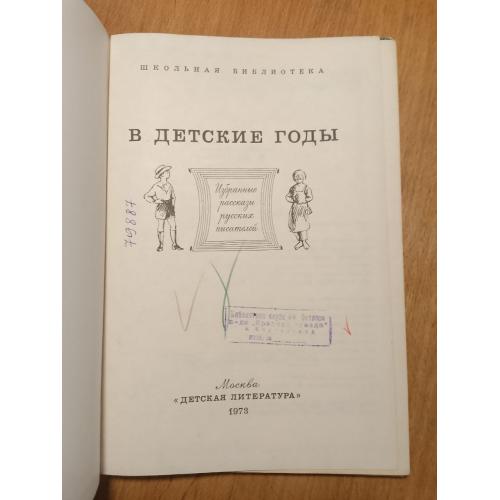 В детские годы. Избранные рассказы русских писателей для детей. Ув формат. Издательство: Детская литература. 1973