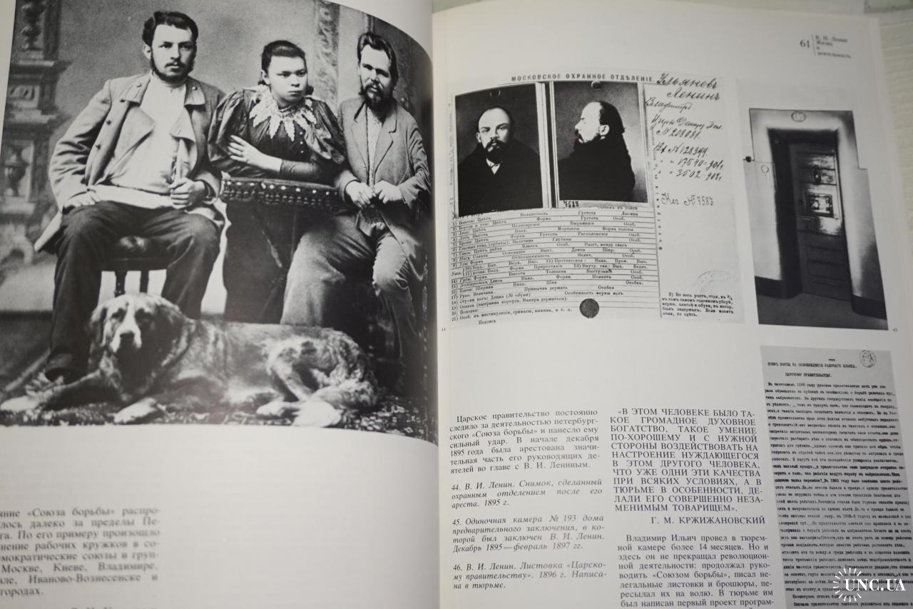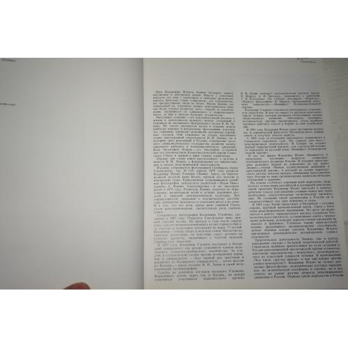 Альбом содержит более 1000 фотографий, рисунков, плакатов, карикатур связанных с именем и деятельностью В. И. Ленина. Суперобложка, ляссе, мелованная бумага.