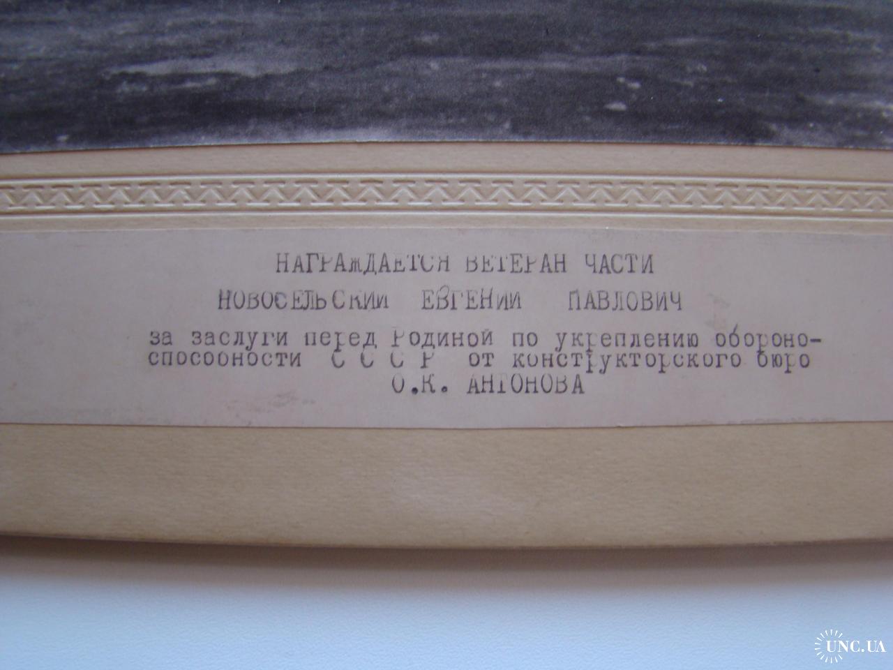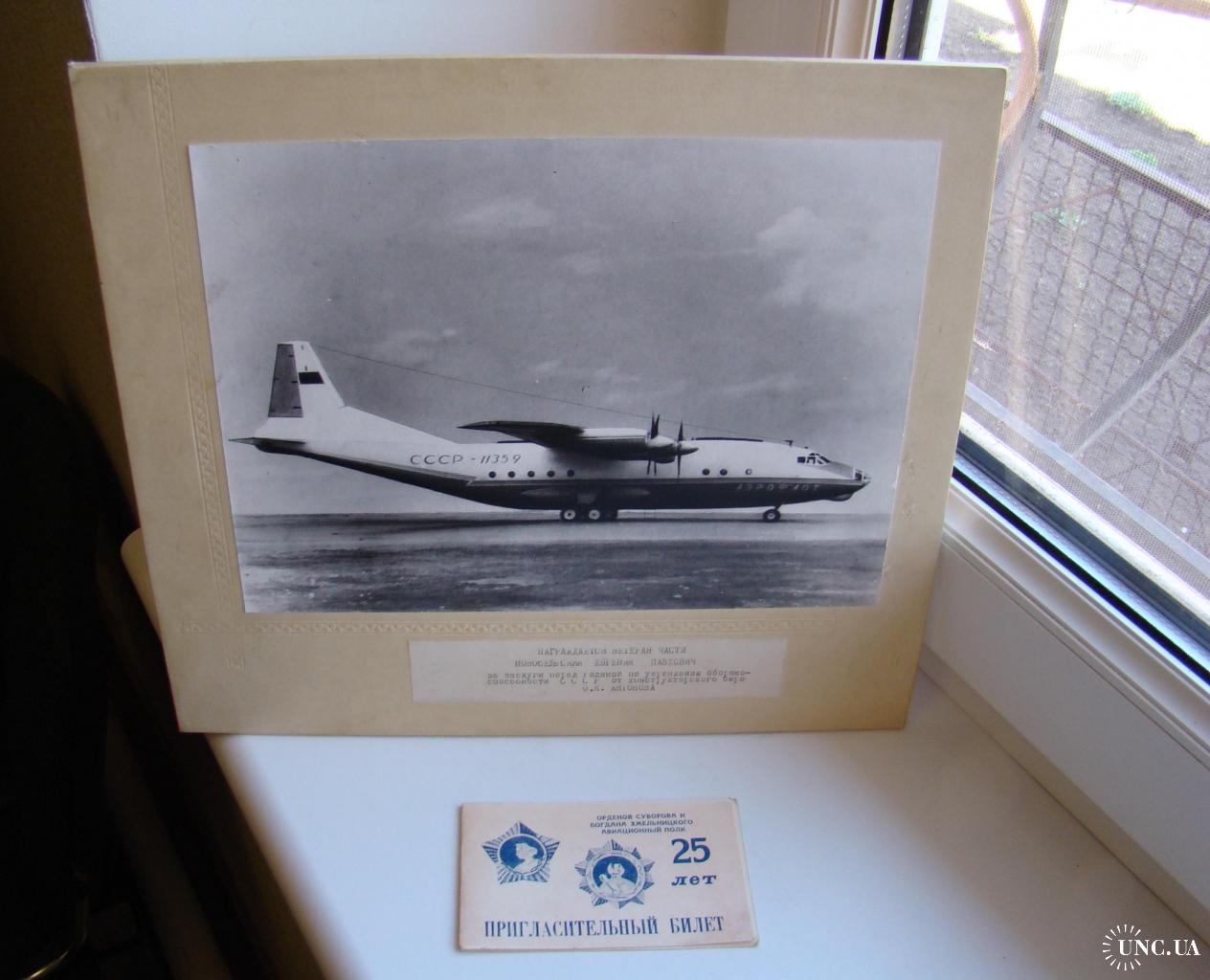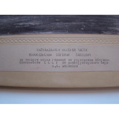 2. Фотокартина с самолетом АН-12 и дарственной надписью от конструкторского бюро О.К.Антонова (на фото показал), размер 35х31 см. На самолете бортовой номер 11359. Этот борт известен тем, что демонстрировался на авиасалоне в Ле-Бурже в 1965 году в специальной ливрее.