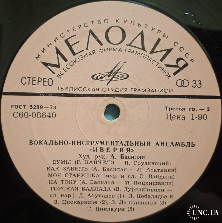 Вінілова платівка. Другий студійний, каталожний альбом Грузинського (радянського) вокально інструментального ансамблю з Тбілісі, Іверія (Иверия) 1978. Випуск фірми (Мелодія) СРСР, Тбіліська Студія Грамзапису. 1978-ий рік. Оригінальне, першопресове видання. Рідкісне (Rare). Лімітований тираж (Limited Edition). Стан платівки G (багато потертостей, глубоких царапин немає). Звучить добре, без перескоків. Стан конверту VG. Відправка по Україні службами доставки: Нова Пошта, Укр Пошта, Делівері. Також відправляємо посилки за кордон по цілому світу.