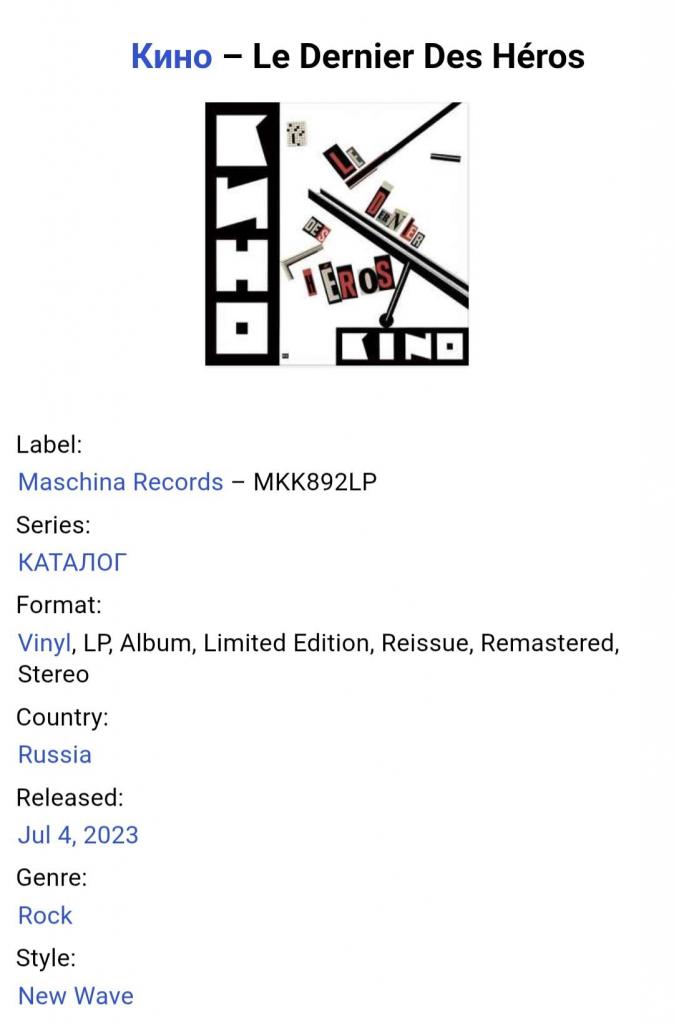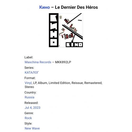 Вінілові платівки. Перша, прижиттєва, повномасштабна збірка найкращих хітів, російської (радянської) рок-групи нової хвилі, Кіно, яка складалася з учасників Віктора Цоя, Юрія Каспаряна, Геогрія Гур,янова та Ігоря Тихомирова (Последний Герой) 1989. Випуск фірми (Maschina Records) Estonia, 2023-ій рік. В комплкті інформаційний, 12-ти сторінковий буклет. Видання нове, запаковане. Категорія S/S. Відправка по Україні службами доставки: Нова Пошта, Укр Пошта, Делівері. Також відправляємо посилки за кордон по цілому світу.