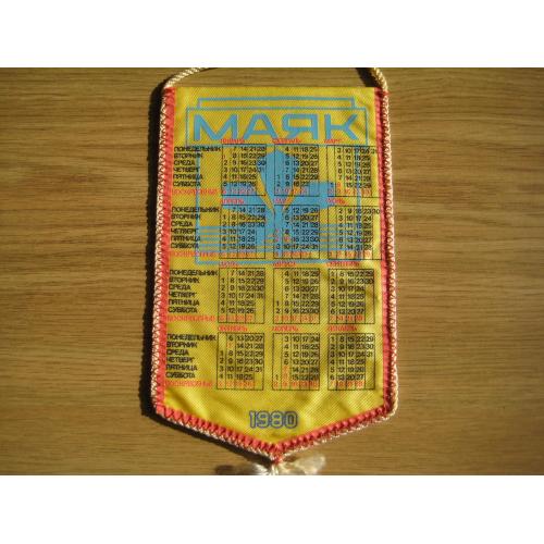 1981-2000№1117. Оригінальний вимпел - Магнітофон Маяк Київ Виробниче об'єднання Маяк, календарь 1980. Висота-17см. Стан прошу оцінювати по фото. Пересилка - Нова пошта, Укрпошта. Для киян можливість зустрічі та перегляду (неділя метро Нивки). В РФ и Белоруссию не отправляю!
