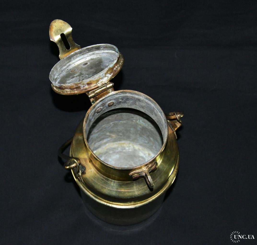 1941-1960Винтажный латунный бидонс крышкой и ручкой.