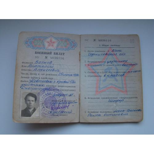 1961-1980Военный билет на мужчину. Дата выдачи 1965 г. Заполнен полностью, в хорошем состоянии. В остальном все как на фото.