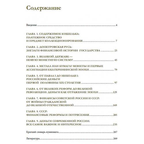 В этой полной иллюстрированной энциклопедии представлена история монет, банкнот и бонов с древних времен и по наши дни. Через призму геополитической, экономической и династической ситуации в России конца XVII — начала XXI века вы познакомитесь с денежной системой нашей страны на протяжении всей ее истории. Книга поможет изучить историю финансовых реформ нашей страны, понимать изображения на монетах и банкнотах, узнать много нового о монетных металлах. Иллюстрированный обзор российской денежной системы будет интересен и начинающим коллекционерам, и всем, кто изучает историю нашей страны.
