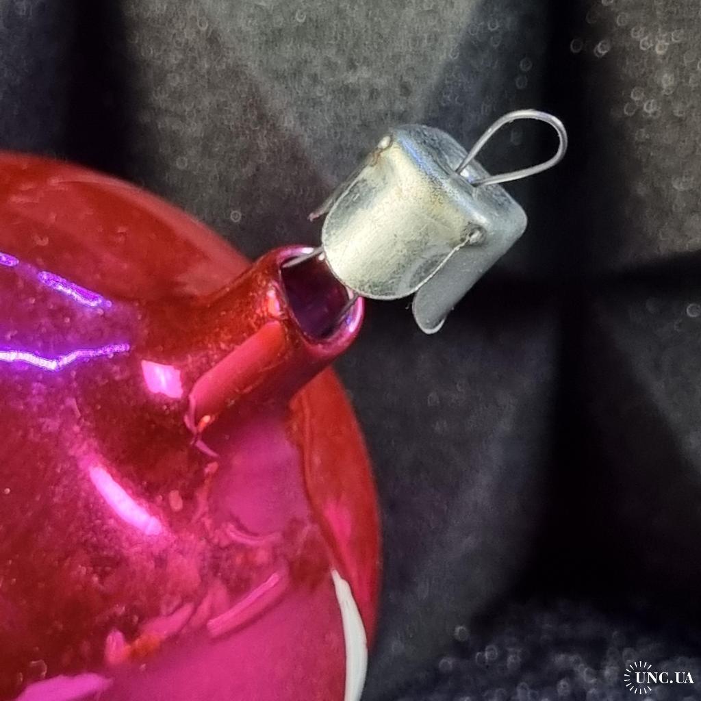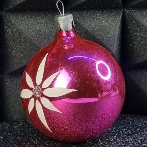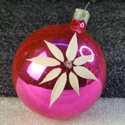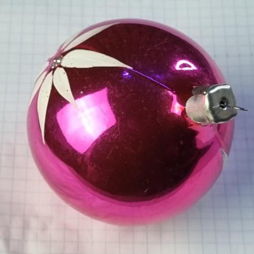 Вінтажна ялинкова прикраса у формі кулі ,рожевого кольору з блискучим покриттям.