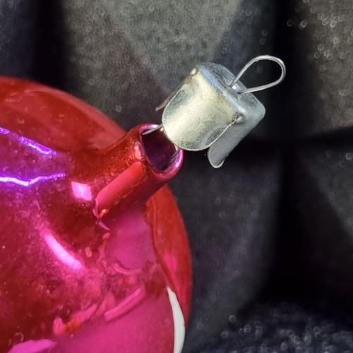 Має класичну металеву верхівку з дротяною петелькою для підвішування.