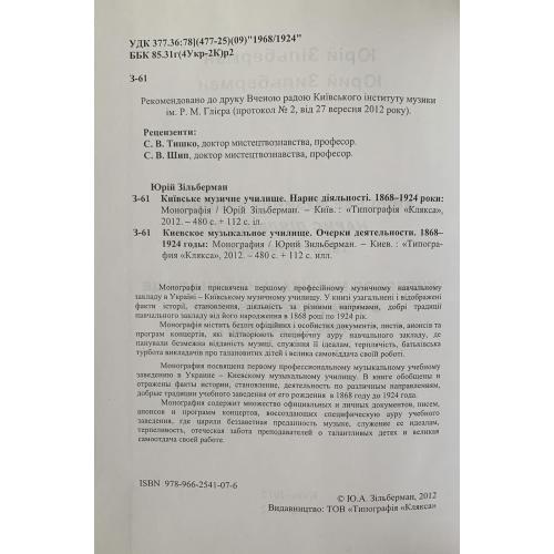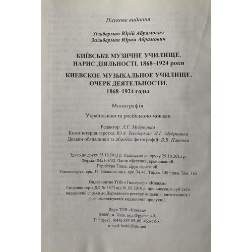 «Київське музичне училище. Нарис діяльності. 1868-1924 роки».