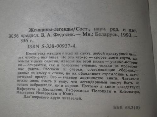 Женщины-легенды. Сост. Федосик. Издательство: Беларусь. 1993 год. В отличном состоянии.