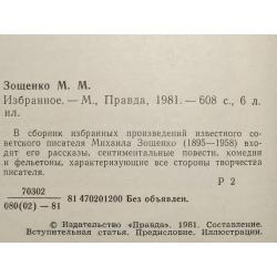 Зощенко. Избранное. Издательство: Правда. 1981 год. Очень хорошее состояние.