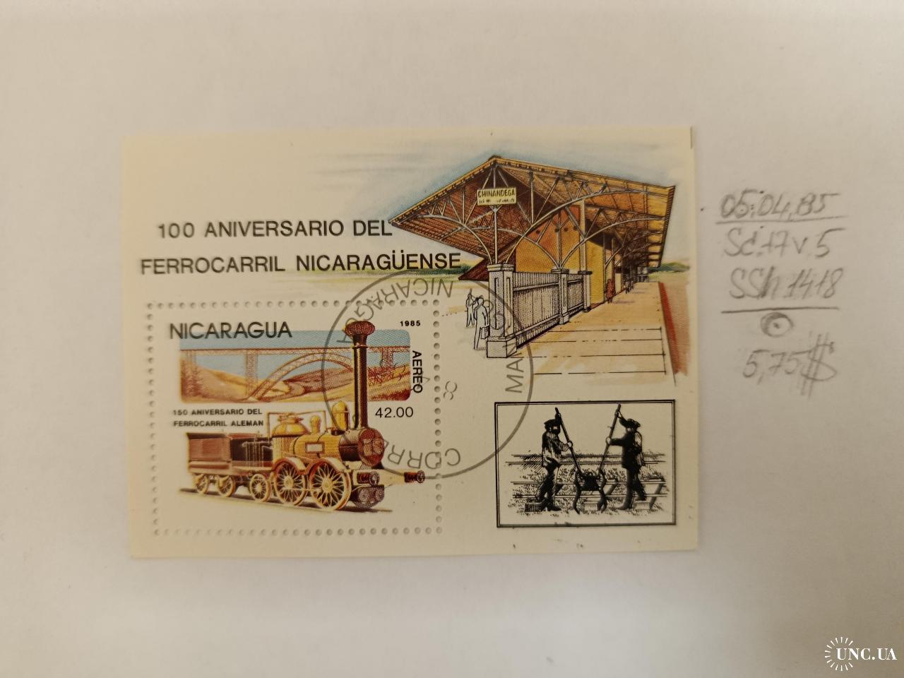 Нікарагуа, 1985 рік, Авіапошта - 100-річчя нікарагуанських залізниць - 150-річчя німецьких залізниць