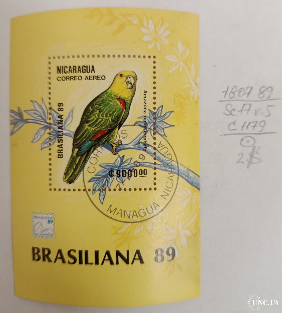 Нікарагуа, 1989 рік, Авіапошта - Птахи - Міжнародна виставка марок "BRAZILIANA '89" - Ріо-де-Жанейро