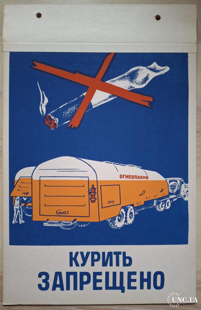 Техника безопасности Плакат Курить запрещено Огнеопасно Папироса сигарета табак Бензовоз Машина СССР