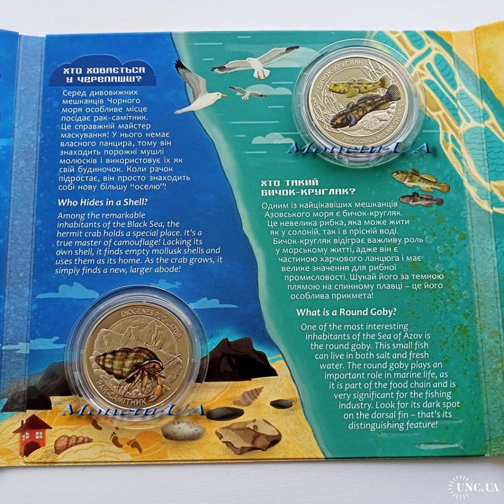 набір із 2-х пам`ятних монет Мешканці морських глибин НБУ 2025 Обитатели морских глубин в сув. уп. 5