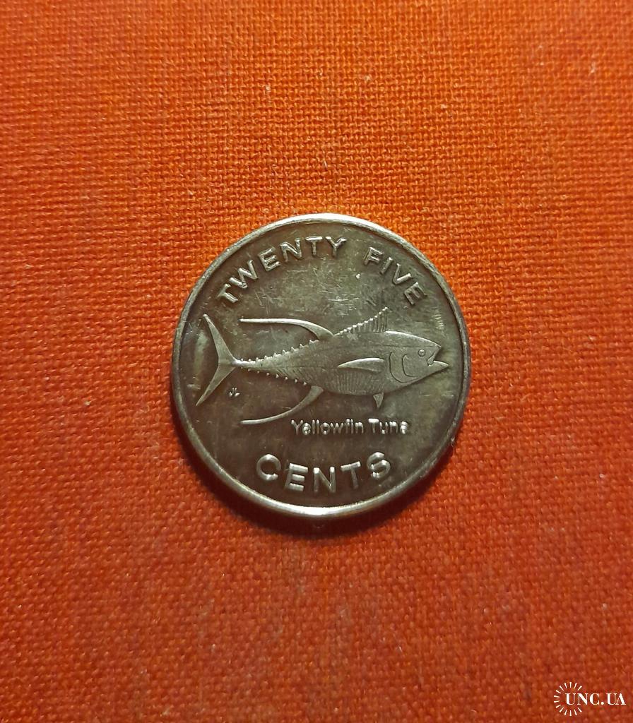 Микронезия 25 центов 2012г.Рыба Желтоперый тунец (Yellowfin Tuna).Федератив. Штаты Микронезии,редкие