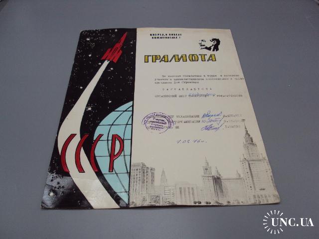 Грамота за участие в соревновании в честь праздника Дня Строителя ракета космос 1975 Тбилиси №18661ч