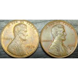 One cent USA 1974 (different mint marks) / 1 цент США 1974 (різні монетні двори)