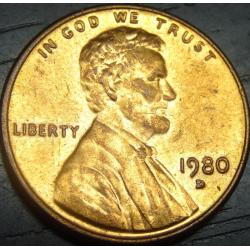 One cent USA 1980 D (Denver mint) / 1 цент 1980 D США (монетний двір Денвер)