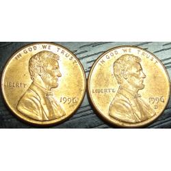 One cent USA 1996 (different mint marks) / 1 цент США 1996 (два різновиди, різні монетні двори)
