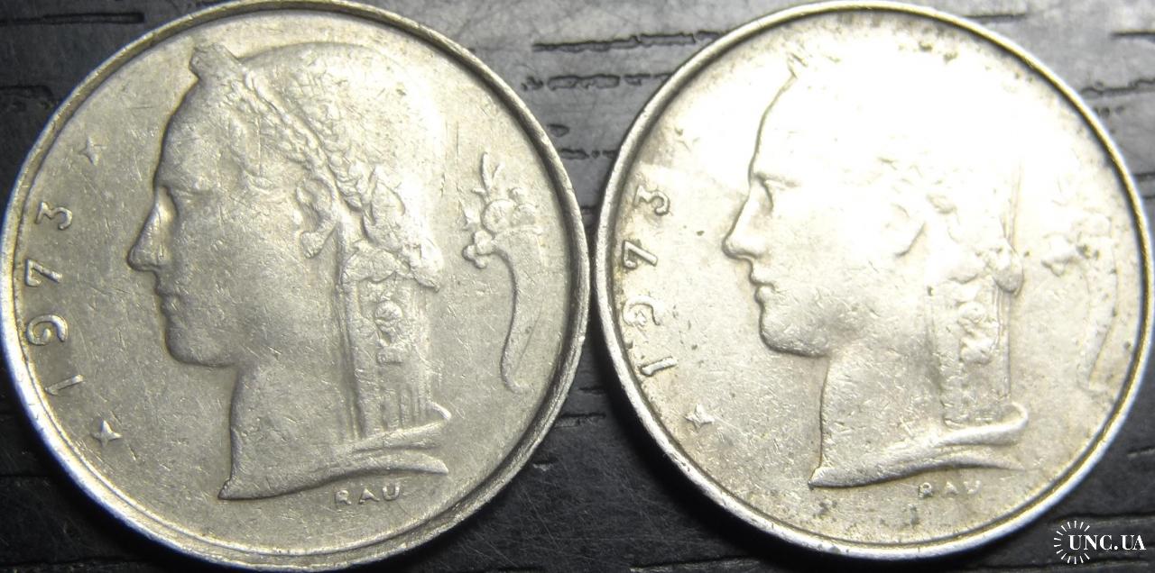 1 franc Belgium 1973 (different legends in French and Dutch) / 1 франк Бельгія 1973 (різні легенди - французька і голандська)