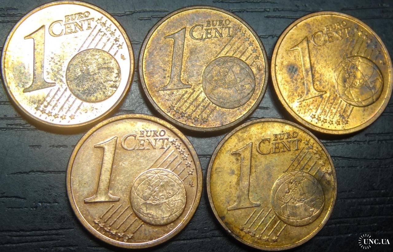 Set of 1 eurocent Estonia (all different by date), 5 pieces / порічниця 1 євроцент Естонія, 5шт, всі різні