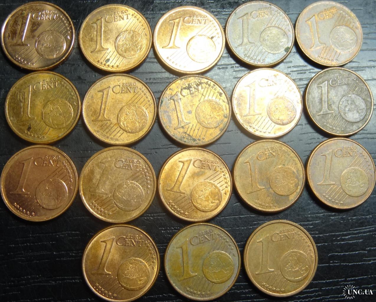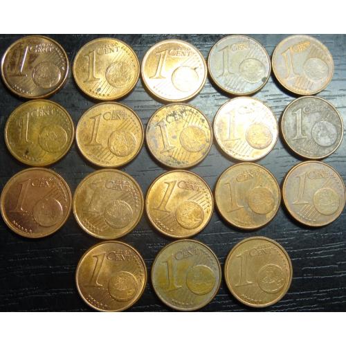Set of 1 eurocent (different countries), 18 pieces / Комплект 1 євроцент різних країн Євросоюзу, 18шт, всі різні