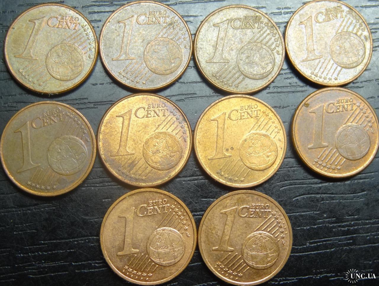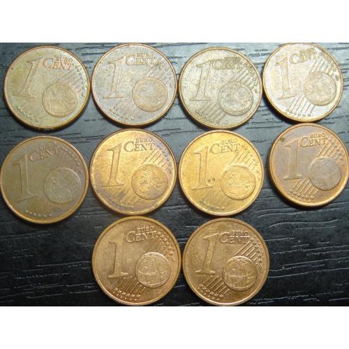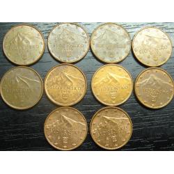 Set of 1 eurocent Slovakia (all different by date), 10 pieces / порічниця 1 євроцент Словаччина, 10шт, всі різні