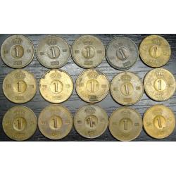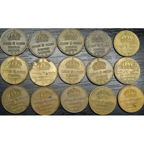 set of 1 ore Sweden (all different by date) 15 pieces / порічниця 1 оре Швеція, 15шт, всі різні