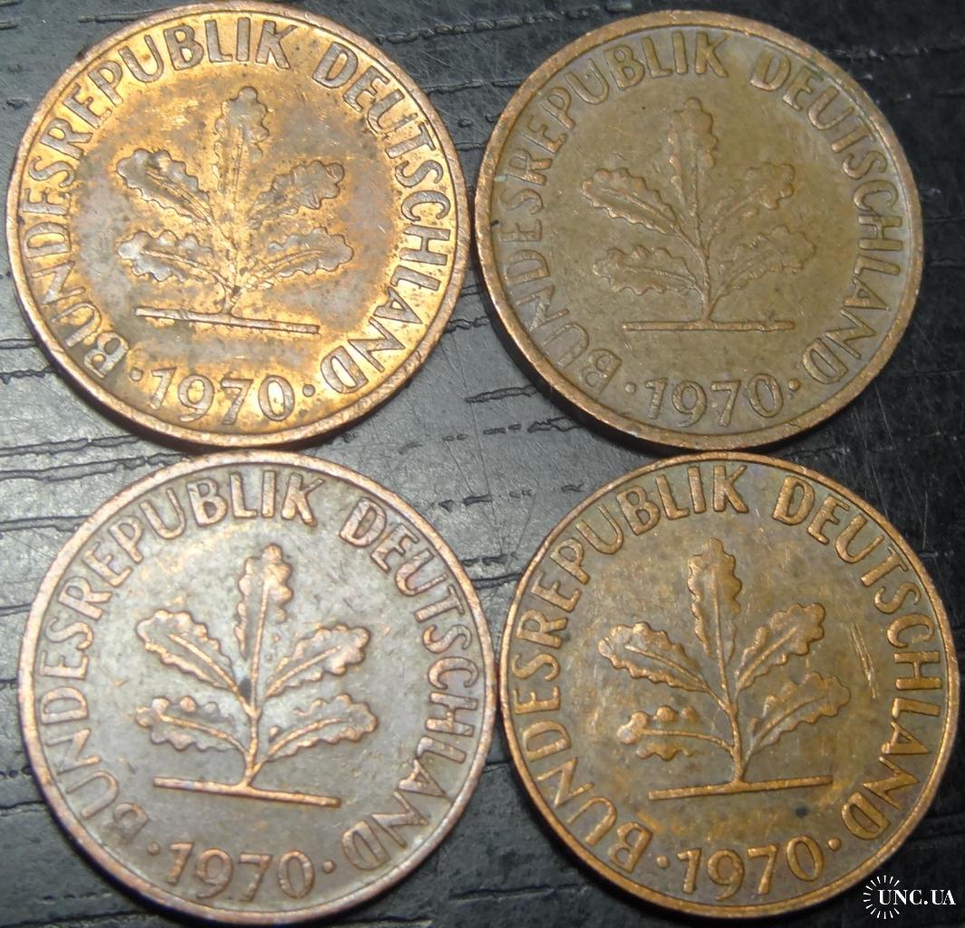 1 pfennig Federal Republic of Germany 1970 (all mint marks) / 1 пфеніг ФРН 1970 (всі монетні двори)