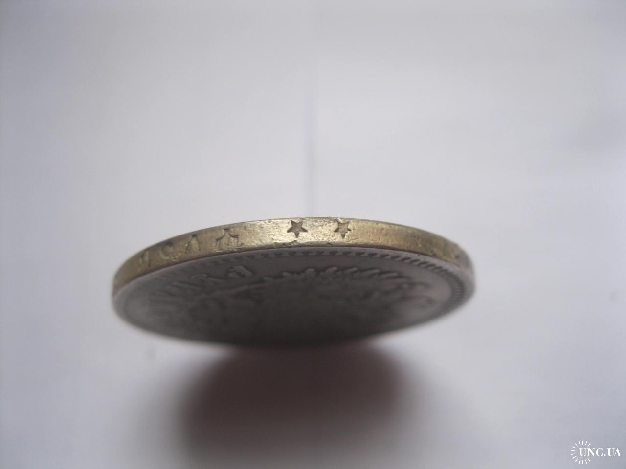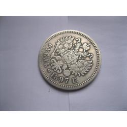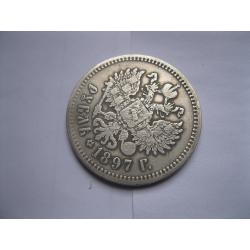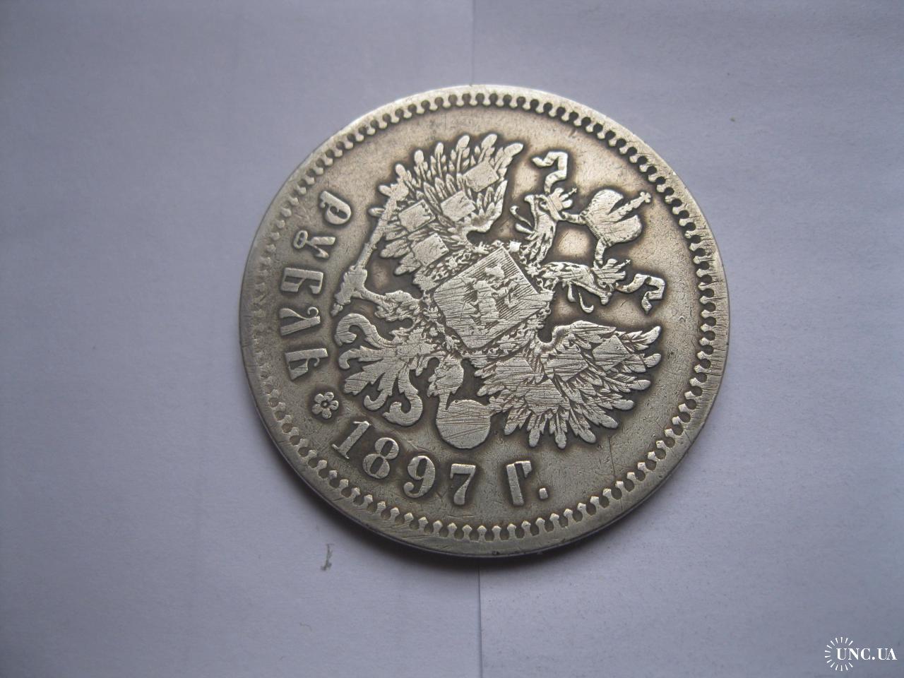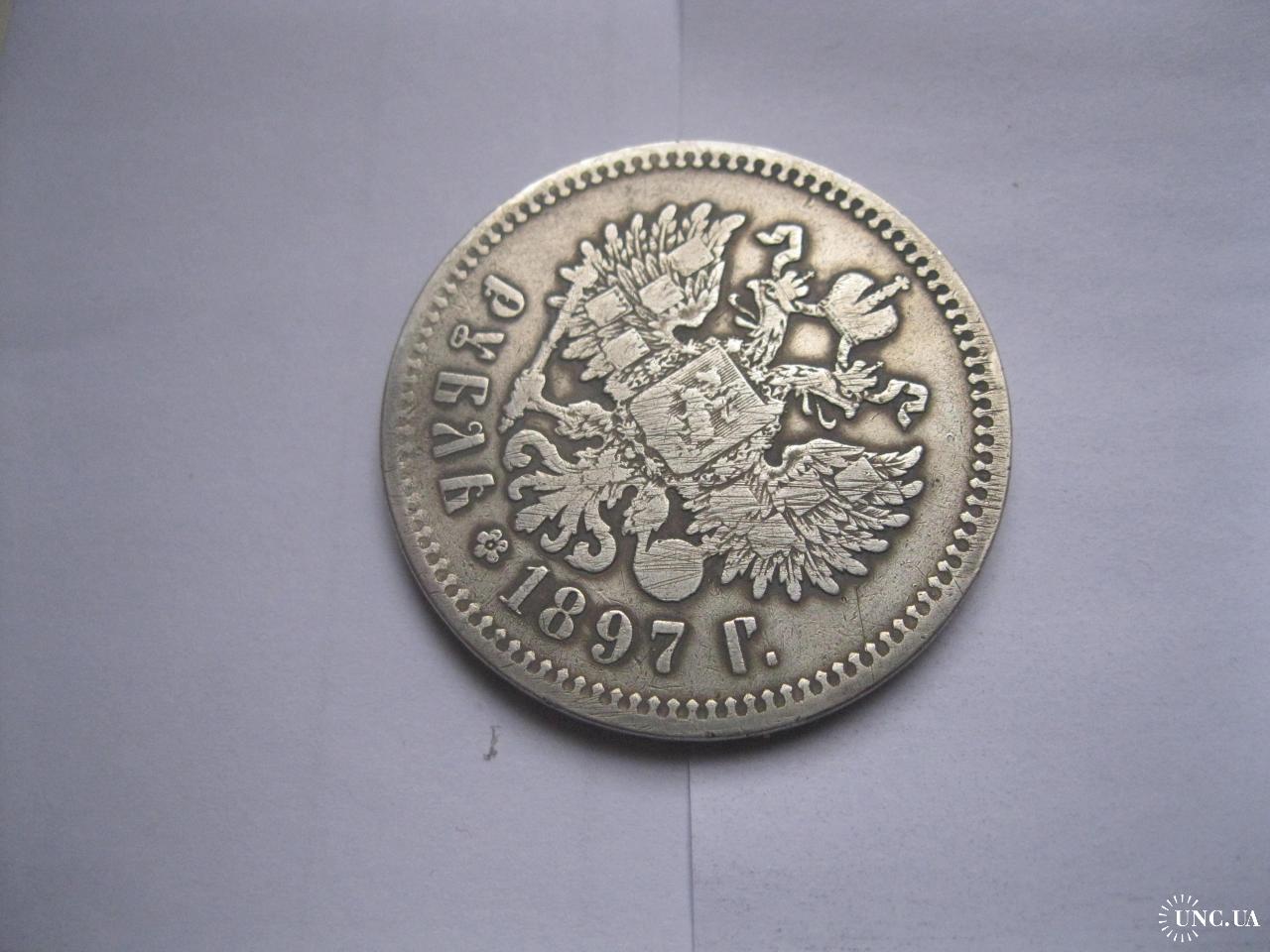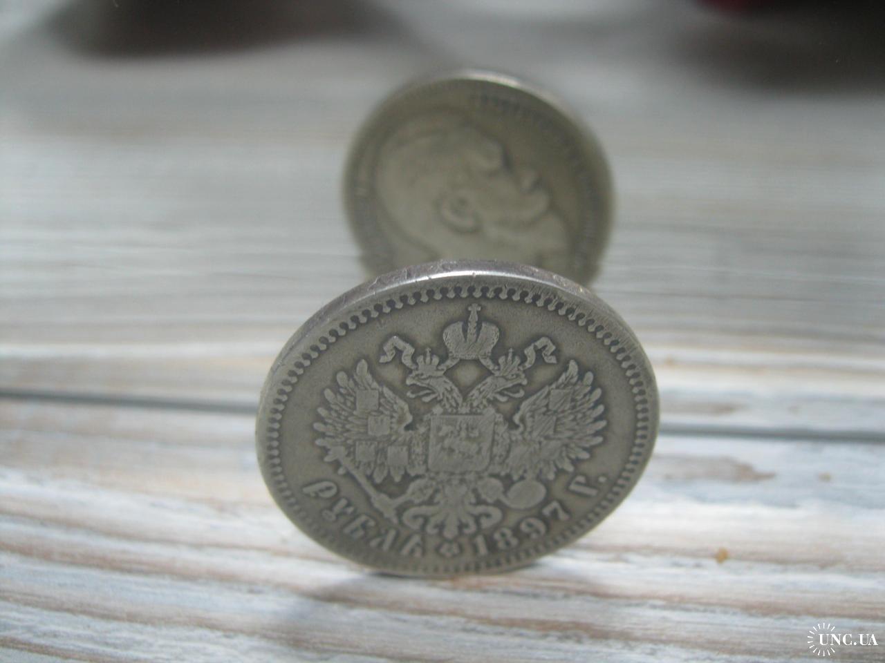 Original1 руб. 1897г. года ( **. на гурте) Российская Империя, Николай II, серебро 900 пробы..Сохран.Монетный брак! Поворот аверса относительно реверса.