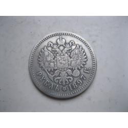Original1 руб. 1897г. года ( **. на гурте) Российская Империя, Николай II, серебро 900 пробы..Сохран.