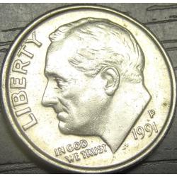 One dime USA 1991 P (Philadelphia mint) / 1 дайм США 1991 P (монетний двір Філадельфія)