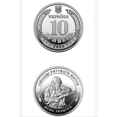 Цена: 16 грн. за 1 монету/штуку 10 гривен 2025 года. Государственная служба Украины по чрезвычайным ситуациям.