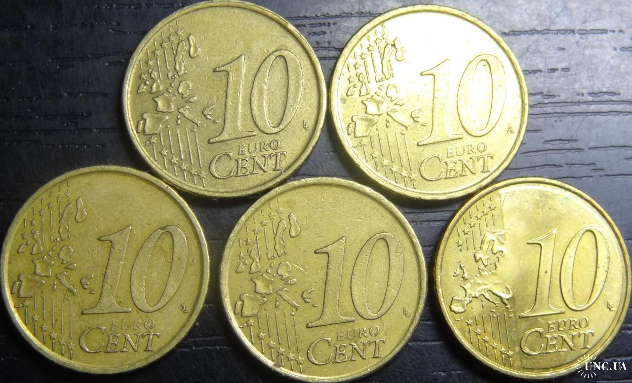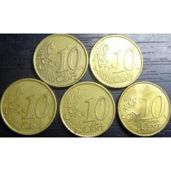 set of 10 eurocent Spain (all different by date) 5 pieces / порічниця 10 євроцентів Іспанія, 5шт, всі різні