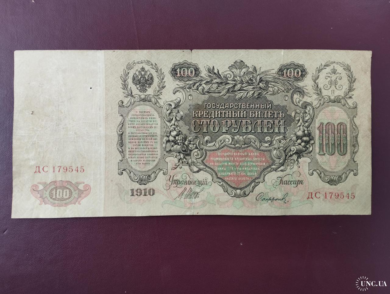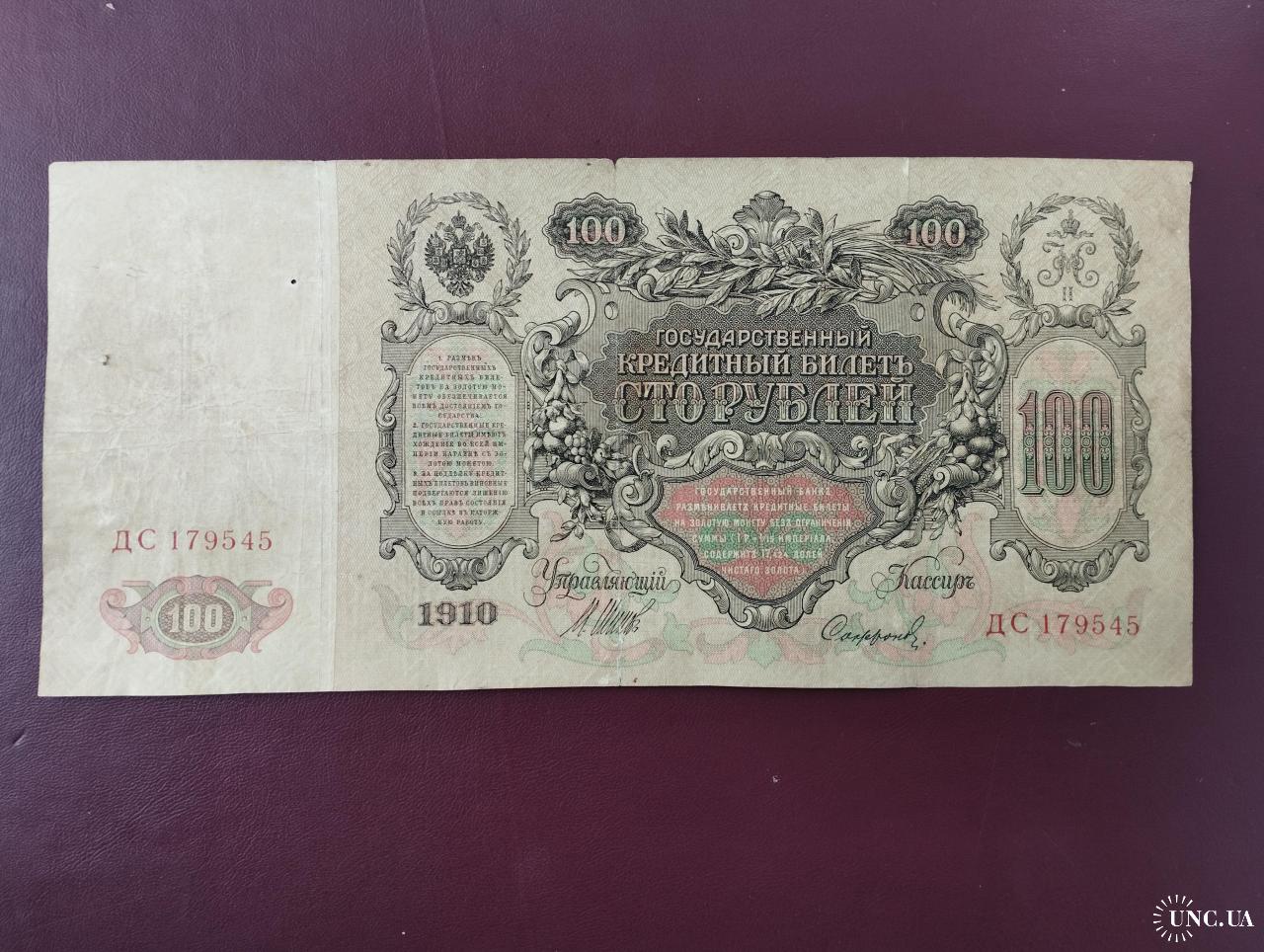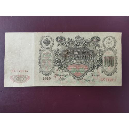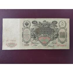 available100 рублей 1910 года, Шипов-Софронов, Серия ДС (Царское правительство 1914-1917г.), состояние по фото, хорошее