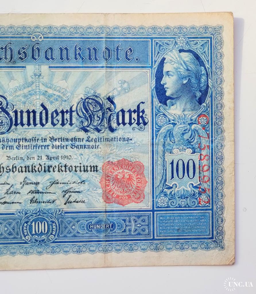 available100 марок 1910 року, Німеччина, стан банкноти по світлинах.